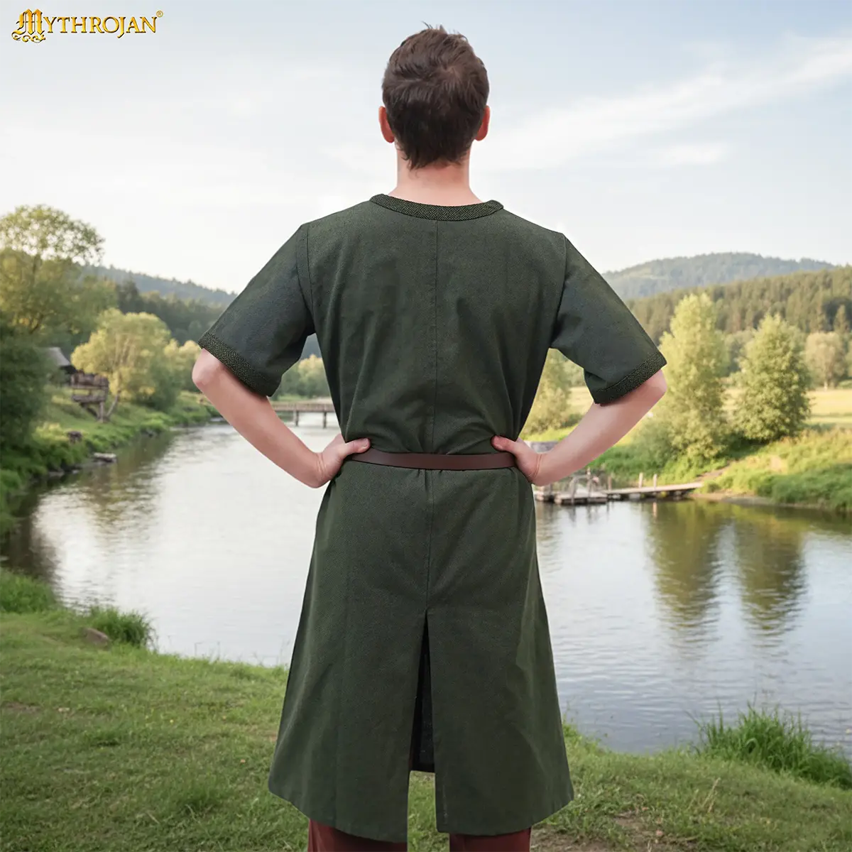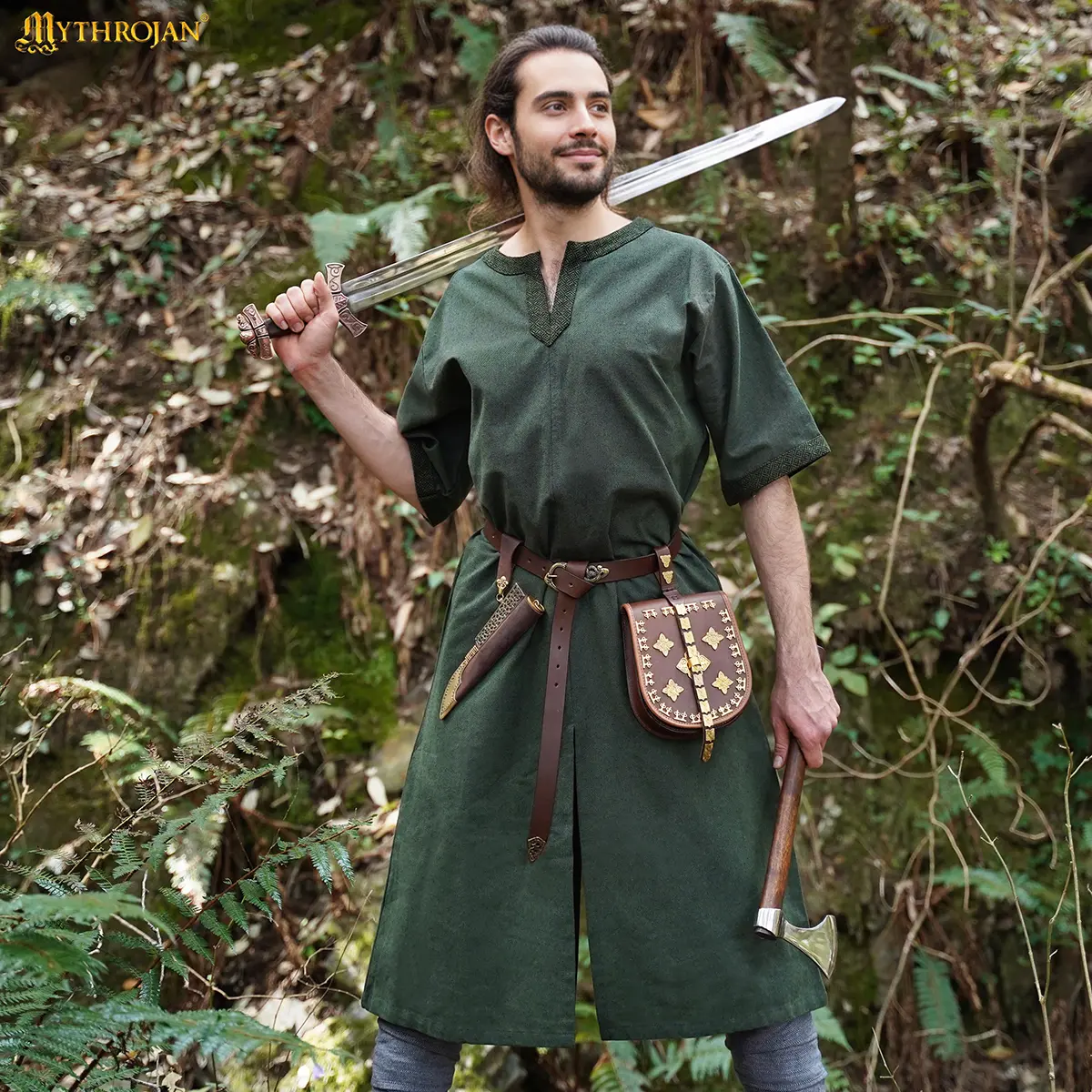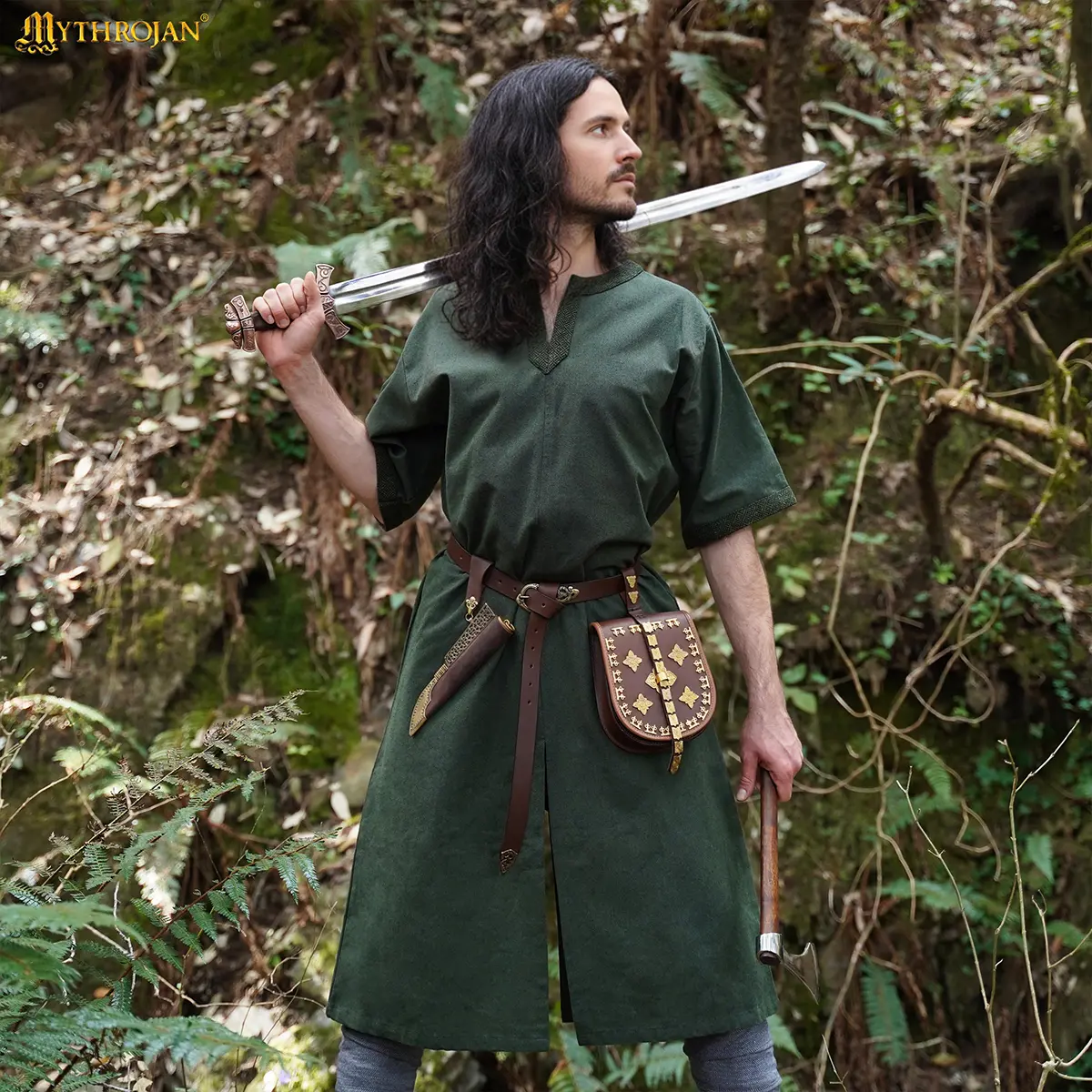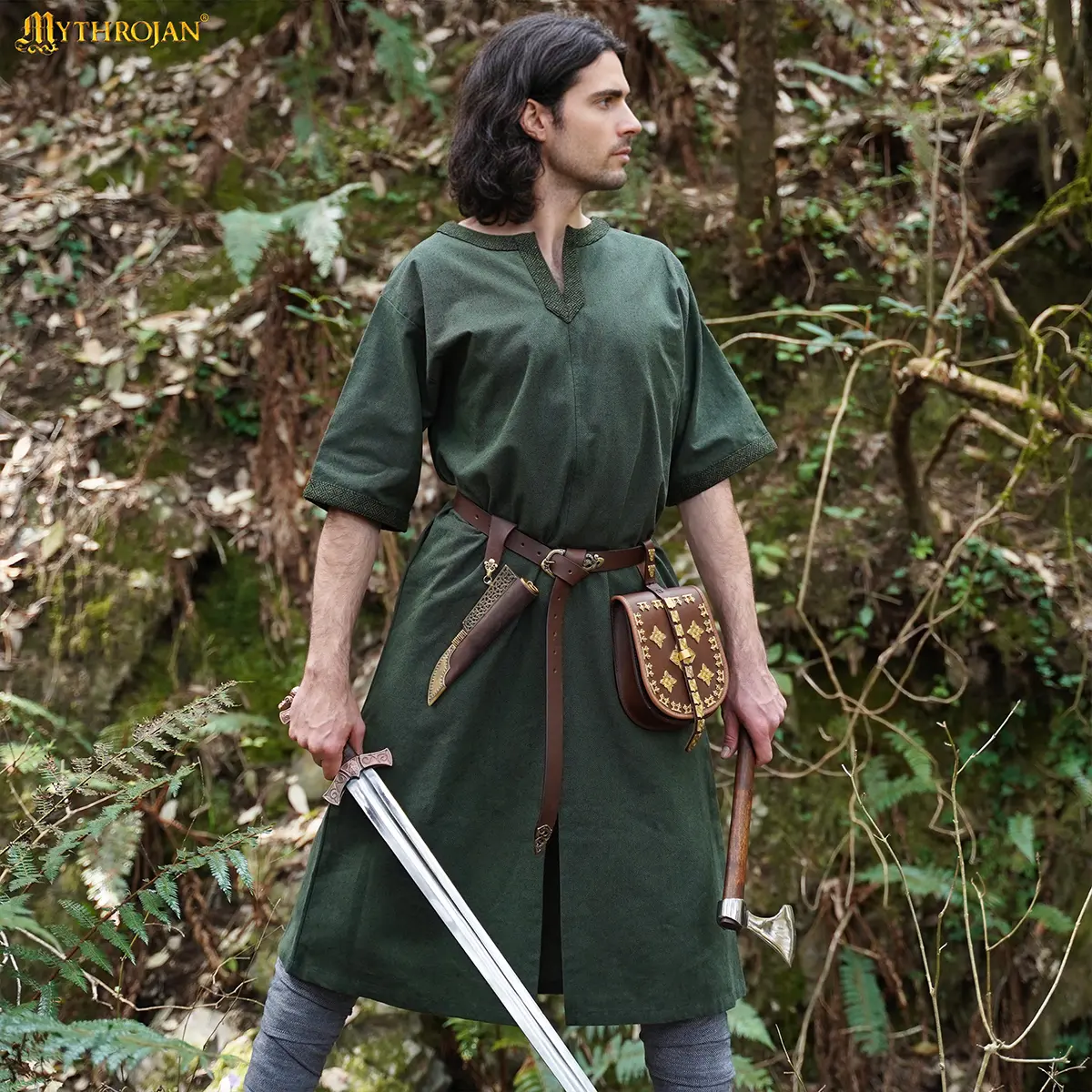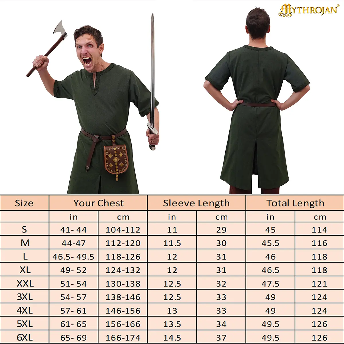 Experience the age of Norse warriors with the Harald Ironfist Viking Tunic, a short-sleeved design crafted from 100% sturdy cotton. Styled in deep green, this tunic is both historically inspired and practical, showcasing the garments worn by Vikings, Saxons, and other northern European cultures between the 8th–11th centuries.