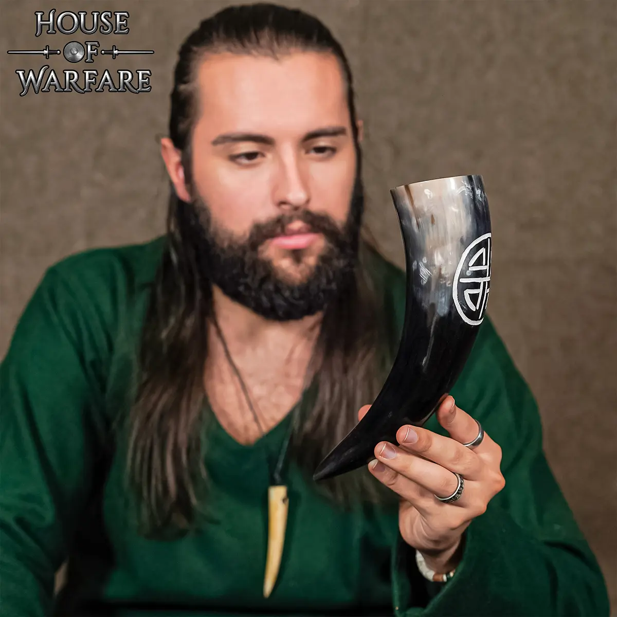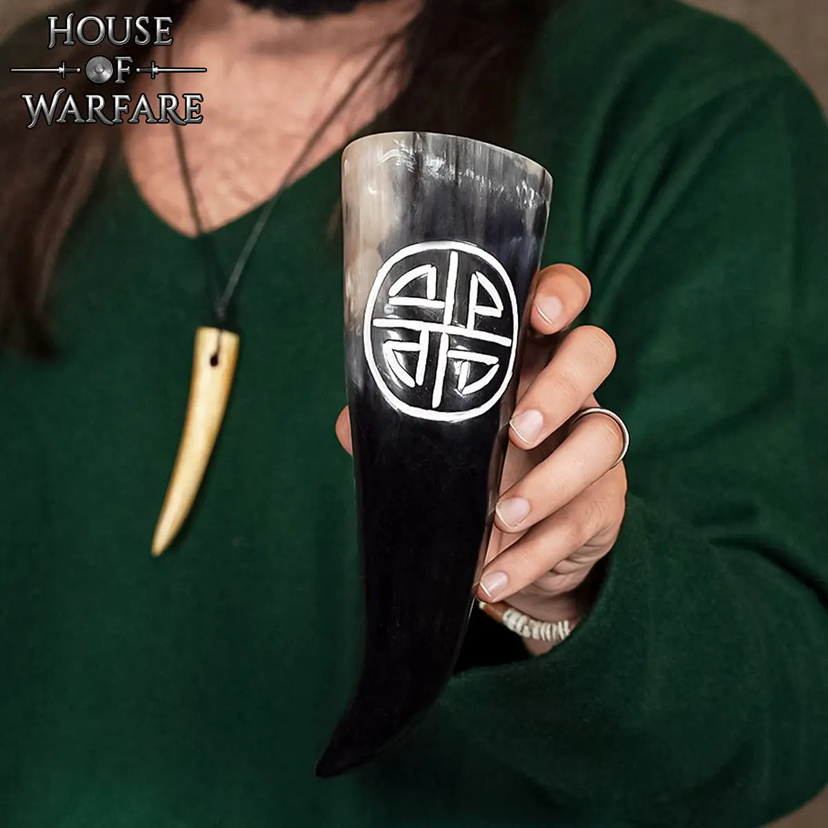 Viking Warrior 300 – 400 ML Drinking Horn with Valknut Hand Carved Design