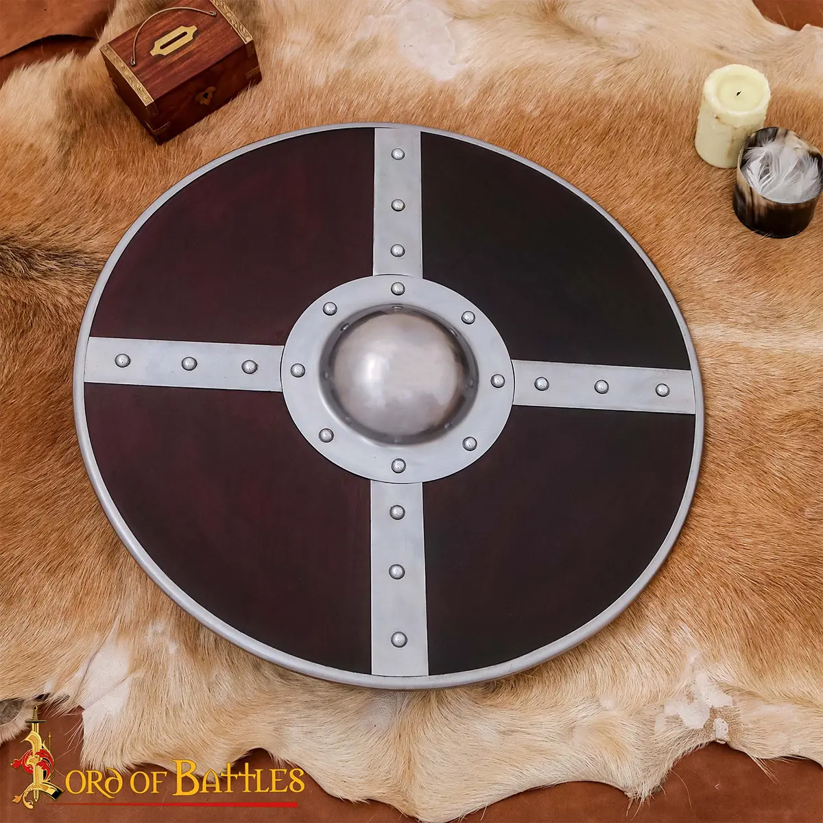 Protect yourself from the fierce attacks of your foes with this Viking wooden shield. Firmly affixed, this shield will sync in well even with the most contemporary settings. The sturdy shield umbo adds to the thrusting action, making it a utilitarian Viking piece of armour that will evermore stay functional (for historical reenactments) and could even add to your medieval decor.