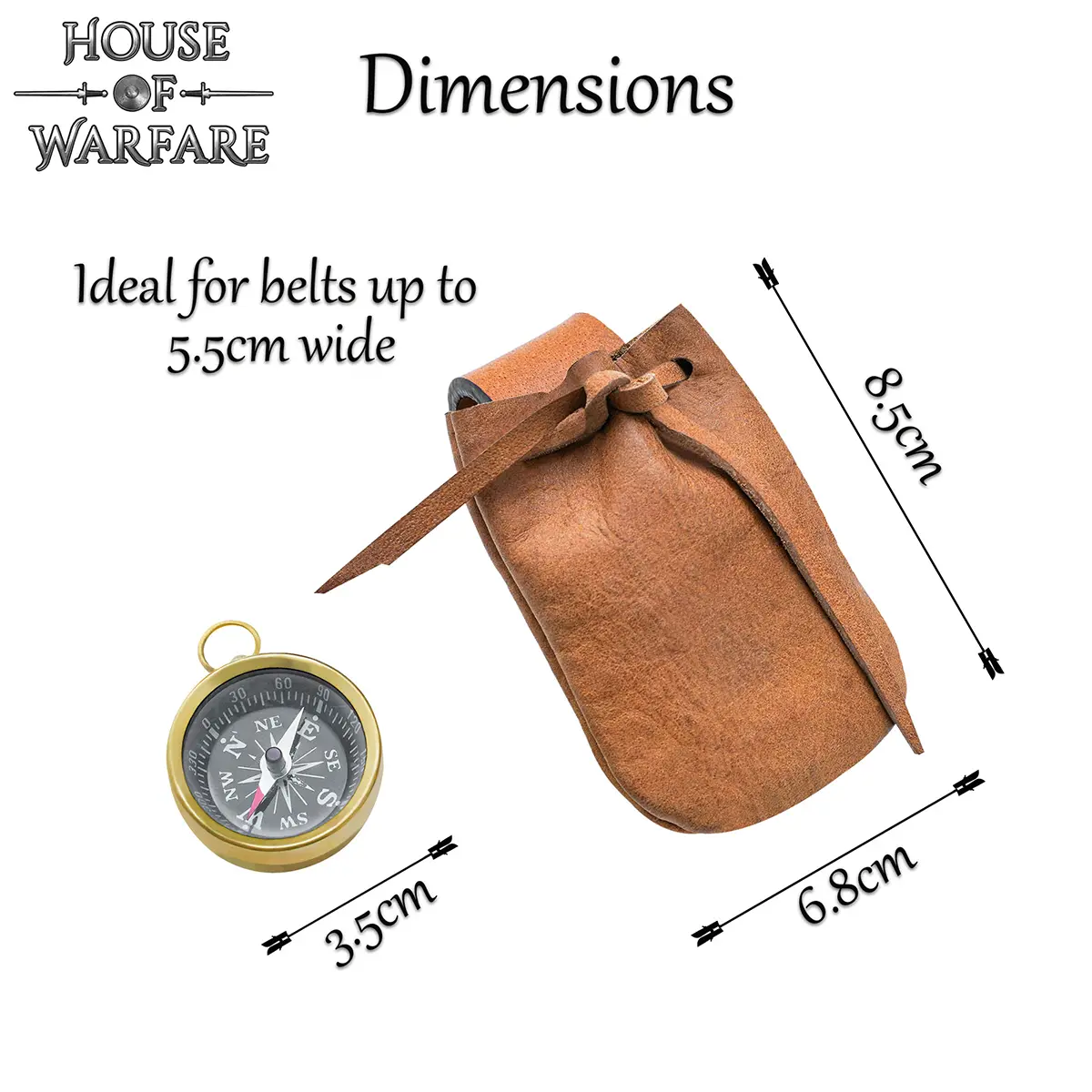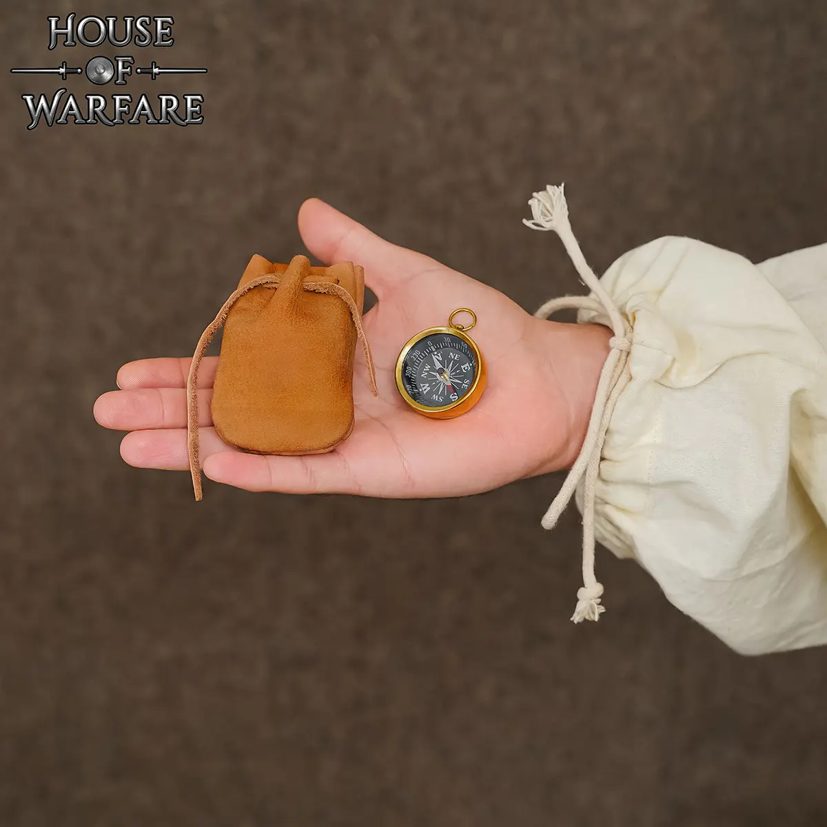 - The leather drawstring closure keeps the compass secure inside.