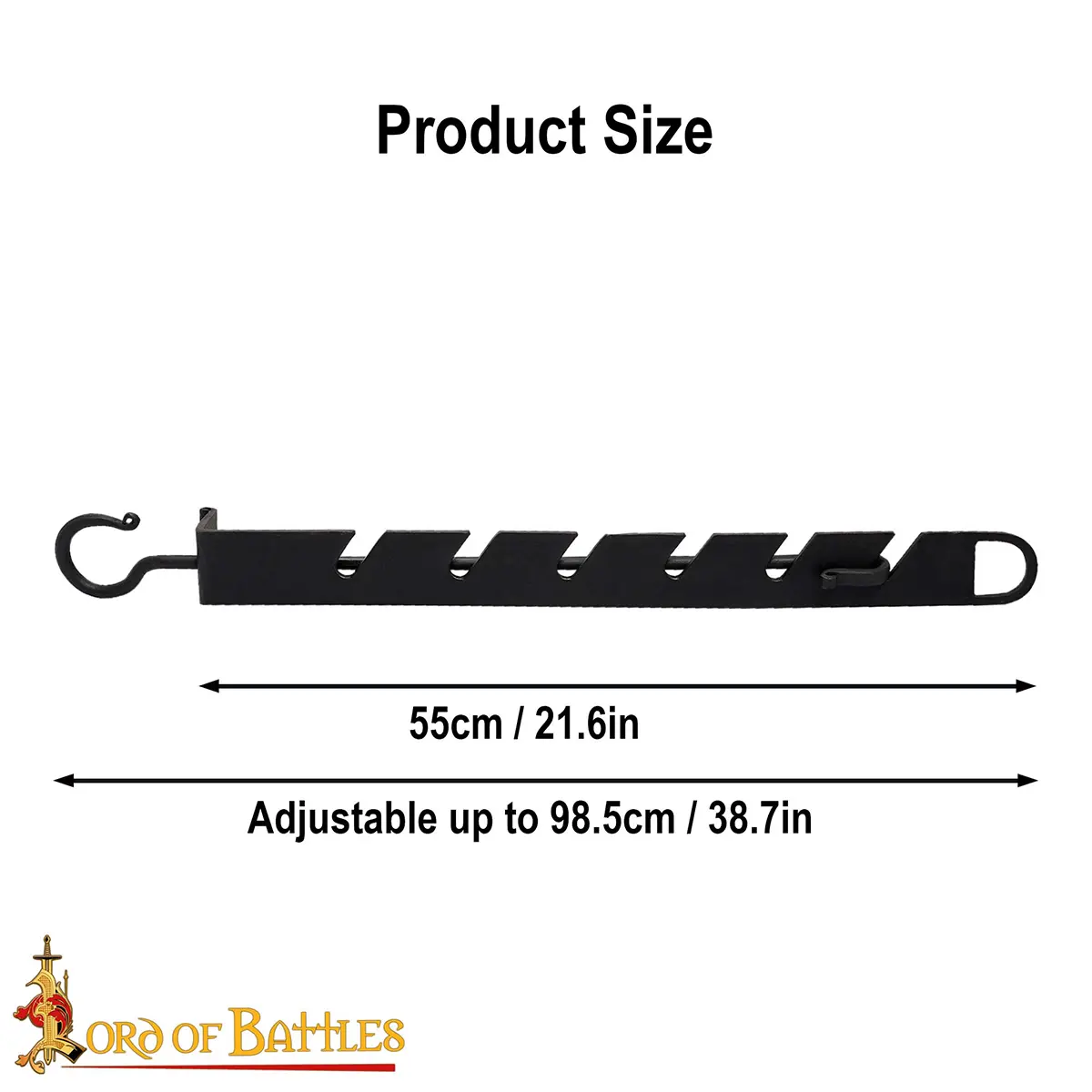 HAND FORGED from sturdy iron, this kettle saw/cookware suspending hook will last for years to come. The total length of its fixed part is approximately 55 cm and is adjustable up to 98.5 cm, which makes it easy to hang your cookware at any suitable size.
