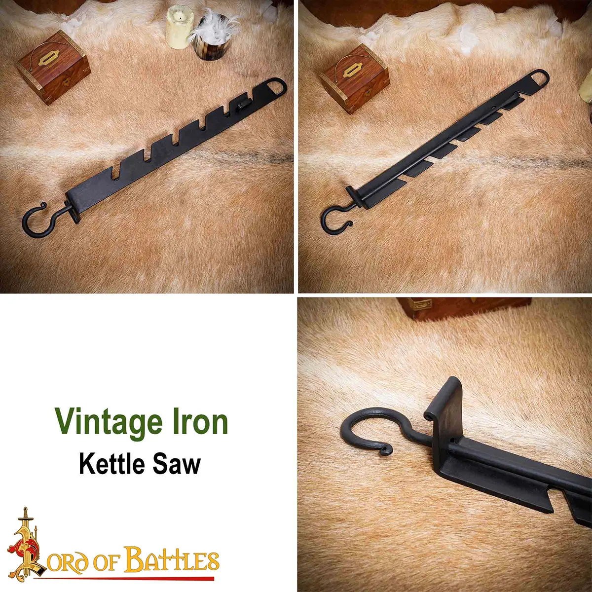 Make the best out of your next camping experience with our vintage iron kettle saw/cauldron hook! It is well-designed with precise technical details that make it great for practical usage, holding your cauldrons or pots firmly while you cook a scrumptious meal by the river!