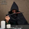 The Wandering Wizard Smoking Pipe is crafted from durable wood and finished in a striking black tone with a contrasting warm bronze-orange accent at the center. The design gives it a bold, medieval look and is quite lightweight and easy to handle.