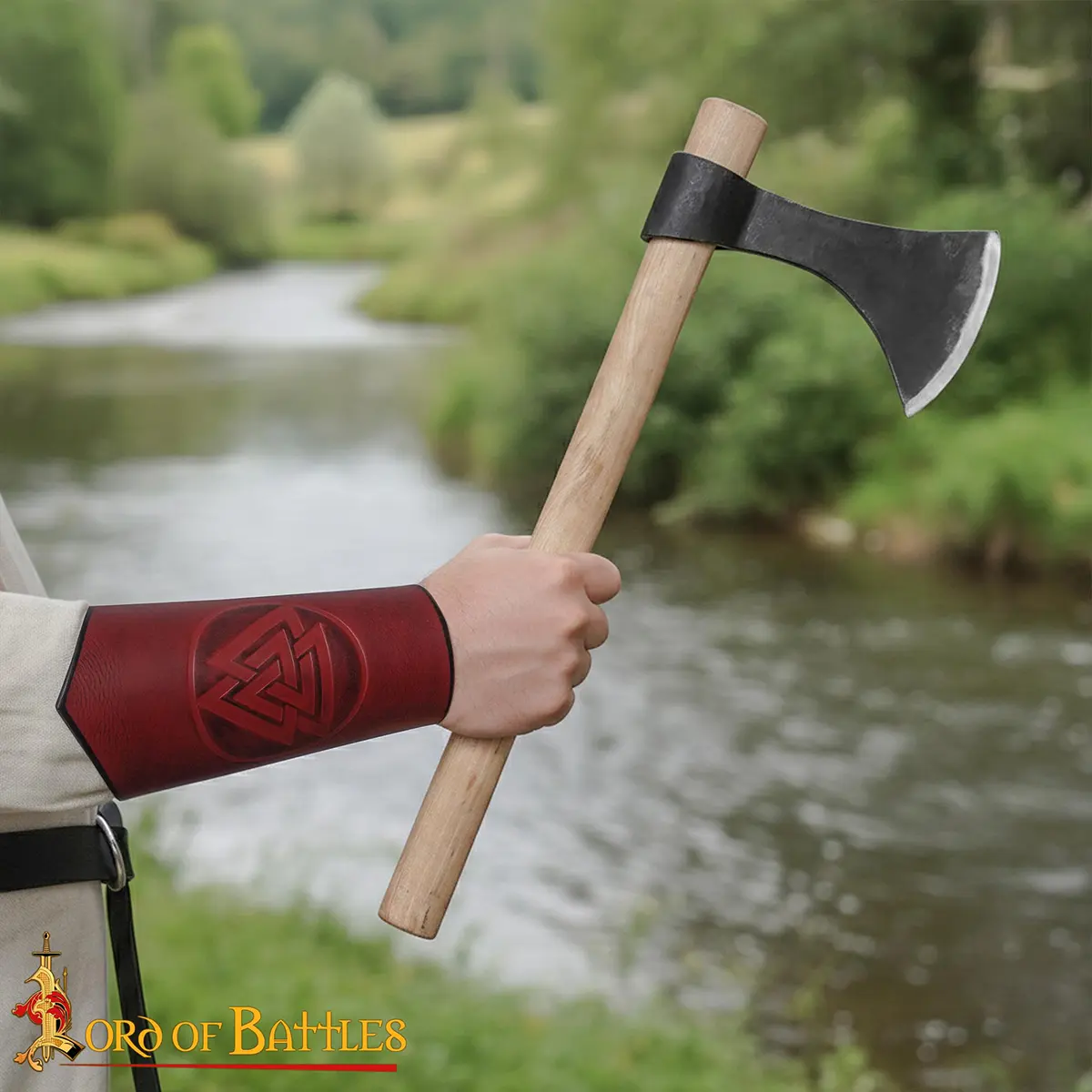 These leather bracers come alive in action – whether you’re engaging in a friendly reenactment or simply drawing attention at a gathering. Feel confident and grounded, equipped with the energy of those who have come before you. The Valknut symbol, intertwined with its deep cultural significance, acts as a talisman, empowering you in your pursuit of bravery.