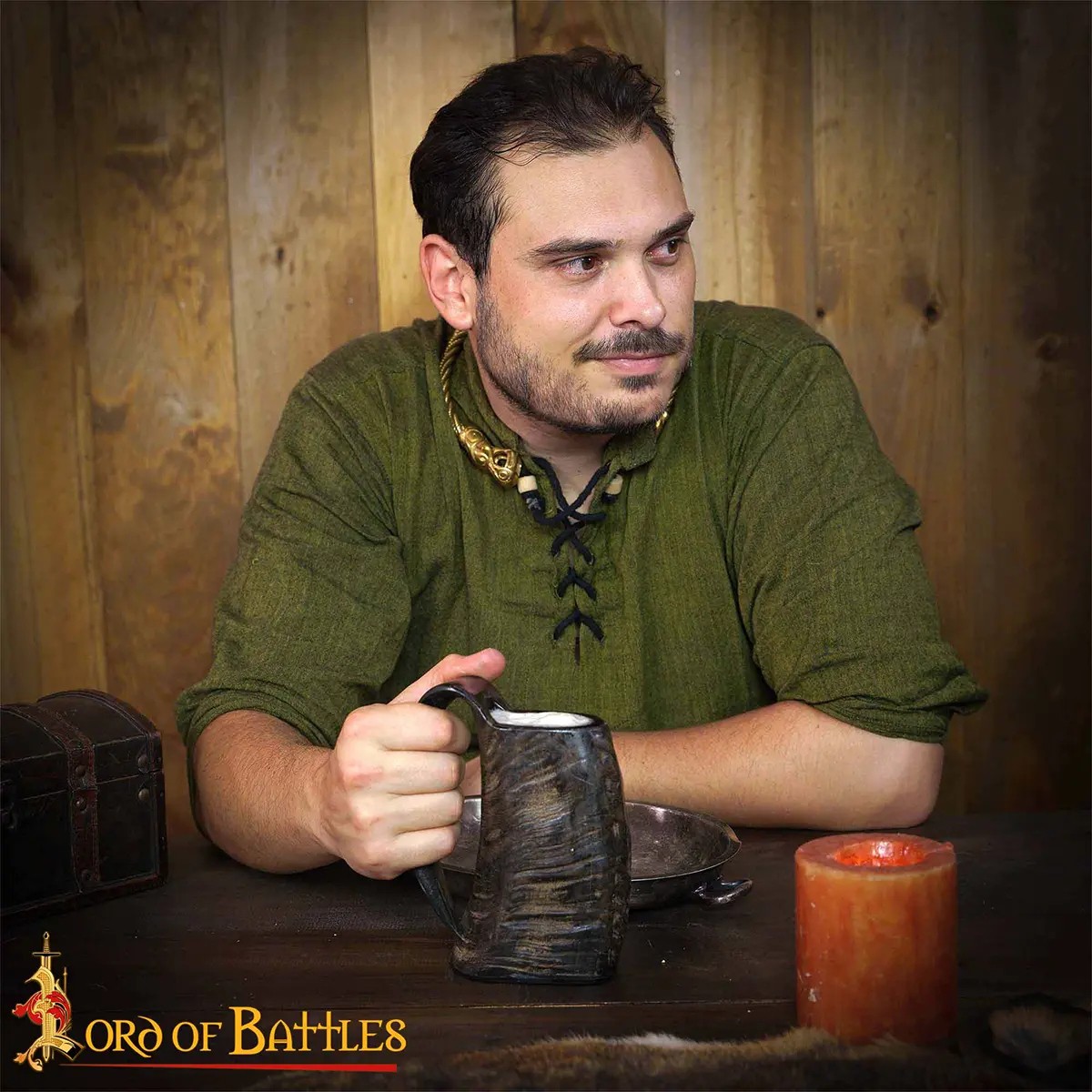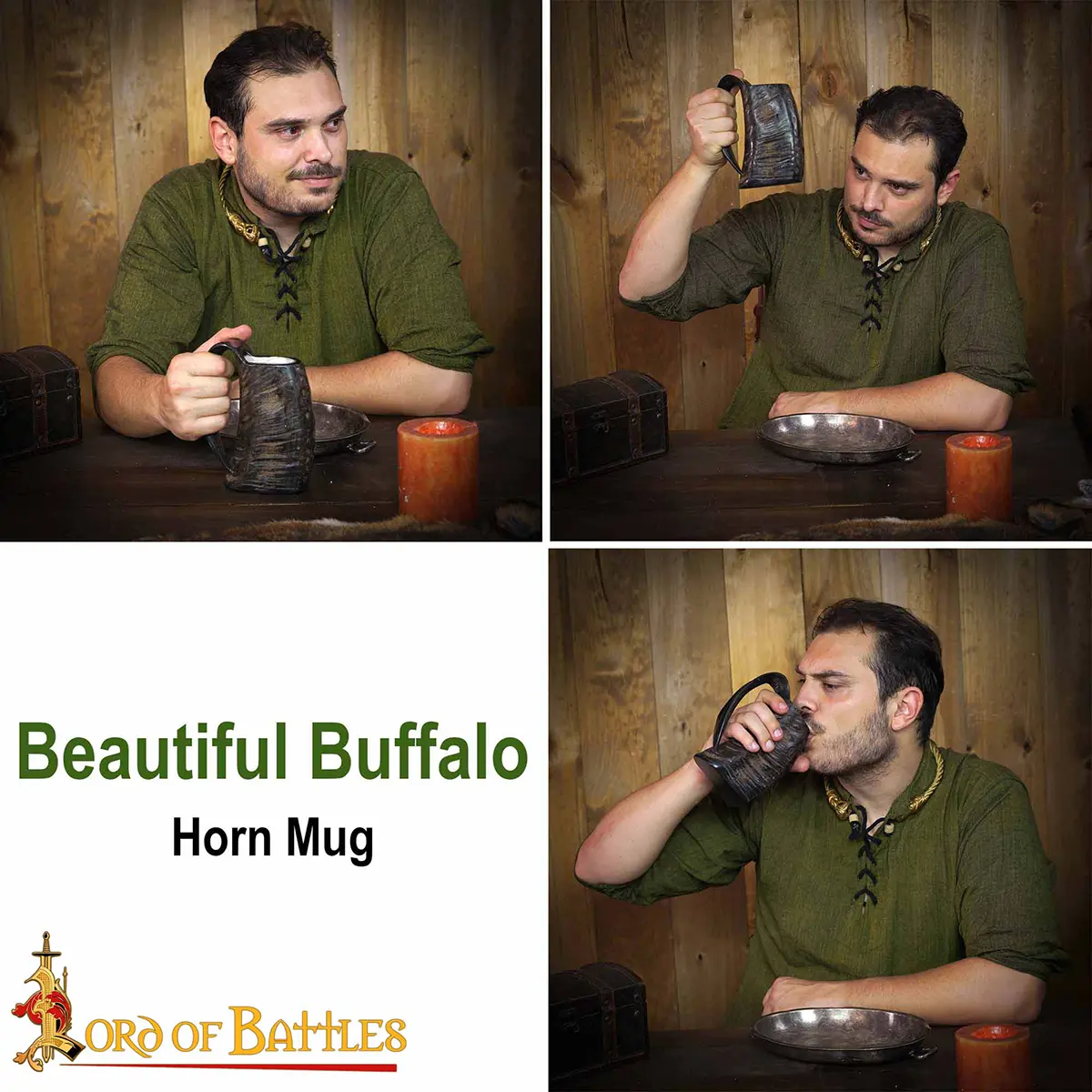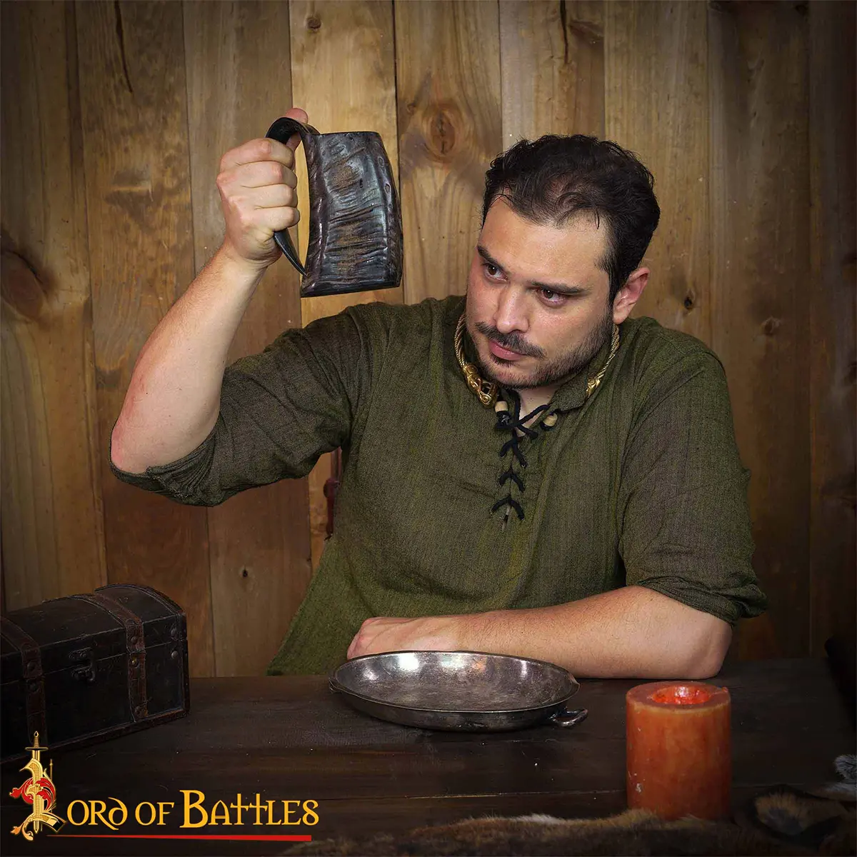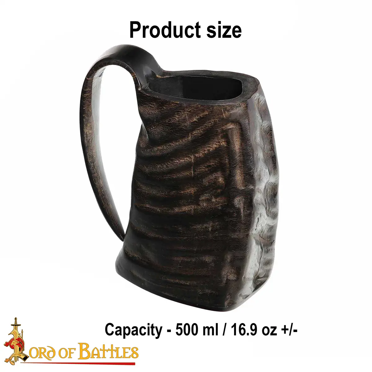 Its total capacity is approx. 500 ml, ideally sized to fit your ale with up to 20% alcohol content. This horn has a leak-locked wooden base. Please note this is a natural product that decays with time and, hence cracks may appear. Make sure to keep it away from dishwashers and hot beverages. For enhanced longevity, treat it regularly with bees’ wax. It is an ideal companion for your historical reenactments.