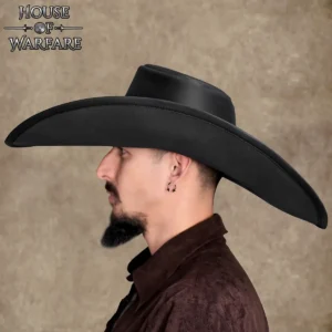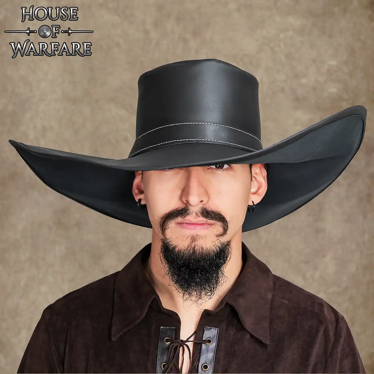 This design also appeals to those looking for a bold leather cowboy hat aesthetic, blending medieval and western inspiration. It pairs well with pirate outfits, musketeer attire, or even modern costume styling.