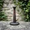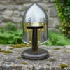 The medieval helmet display has a round base and a smooth vertical support that safely holds small helmets in place. Its compact size makes it ideal for tabletops, office desks, shelves, or display cabinets. Despite being lightweight, the solid wood construction gives good strength and durability for long-term use.