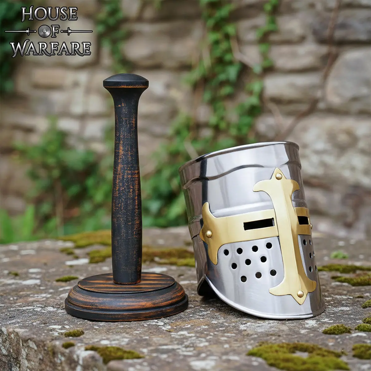 This piece works perfectly as a mini helmet stand for collectors who want to display replica helmets. It is great for medieval-themed decor, collections, or gift displays. The simple design mixes well with both historical and modern interiors, making it a practical wooden helmet stand for everyday display use.